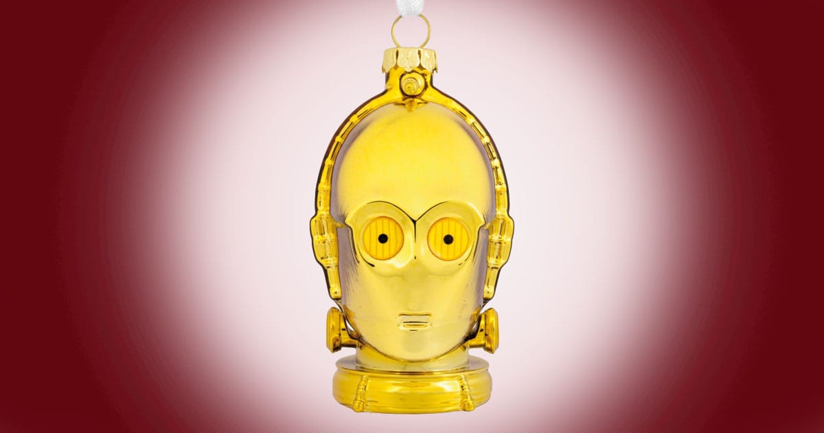A glass C-3PO helmet brings ahead the character’s polished exterior and nervous attraction. The gold end catches gentle simply, permitting the acquainted options to face out in a festive setting. The decoration highlights a determine outlined by warning and courtesy.